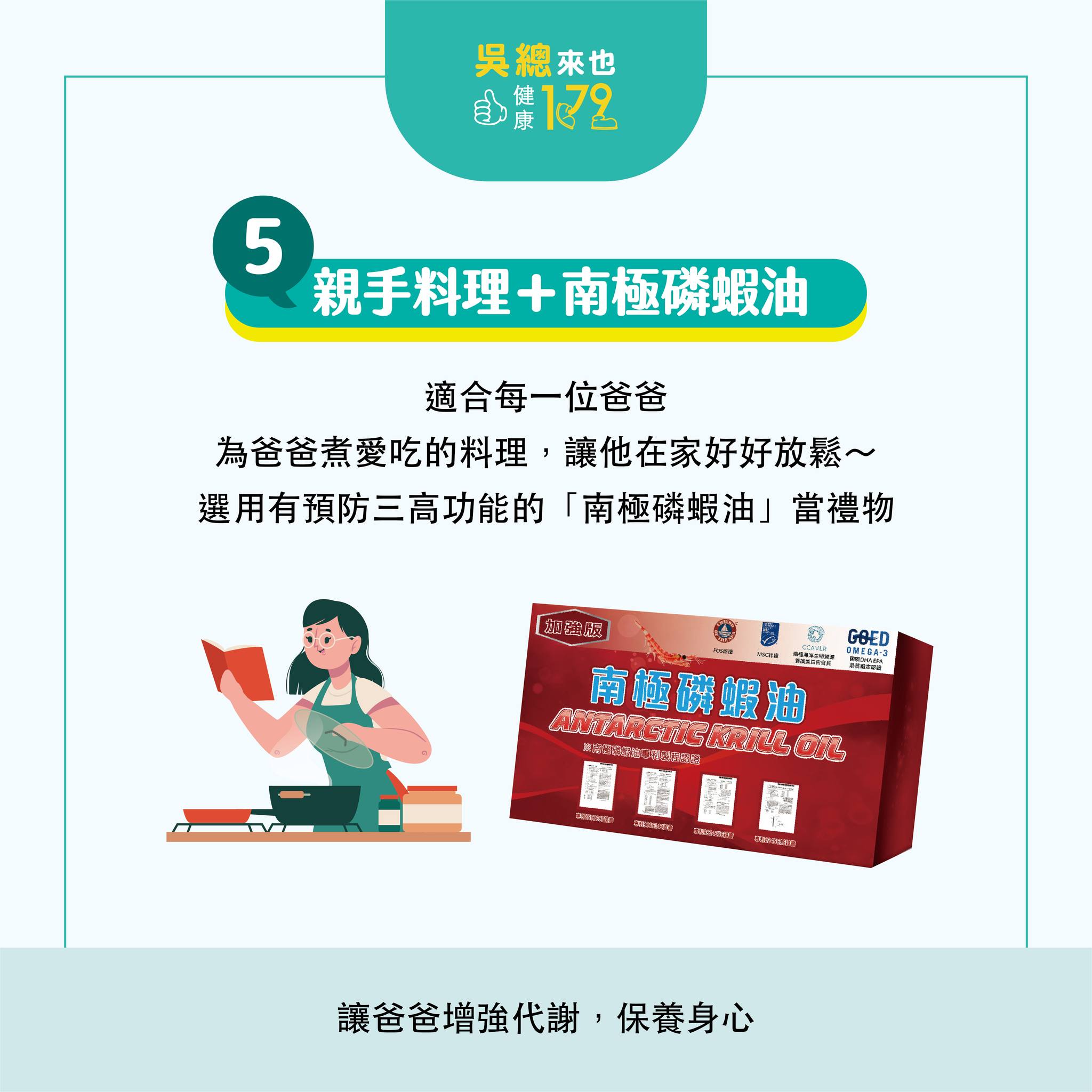 為爸爸煮愛吃的料理,讓他在家好好放鬆~ 選用有預防三高功能的「南極磷蝦油」作為父親節禮物 |