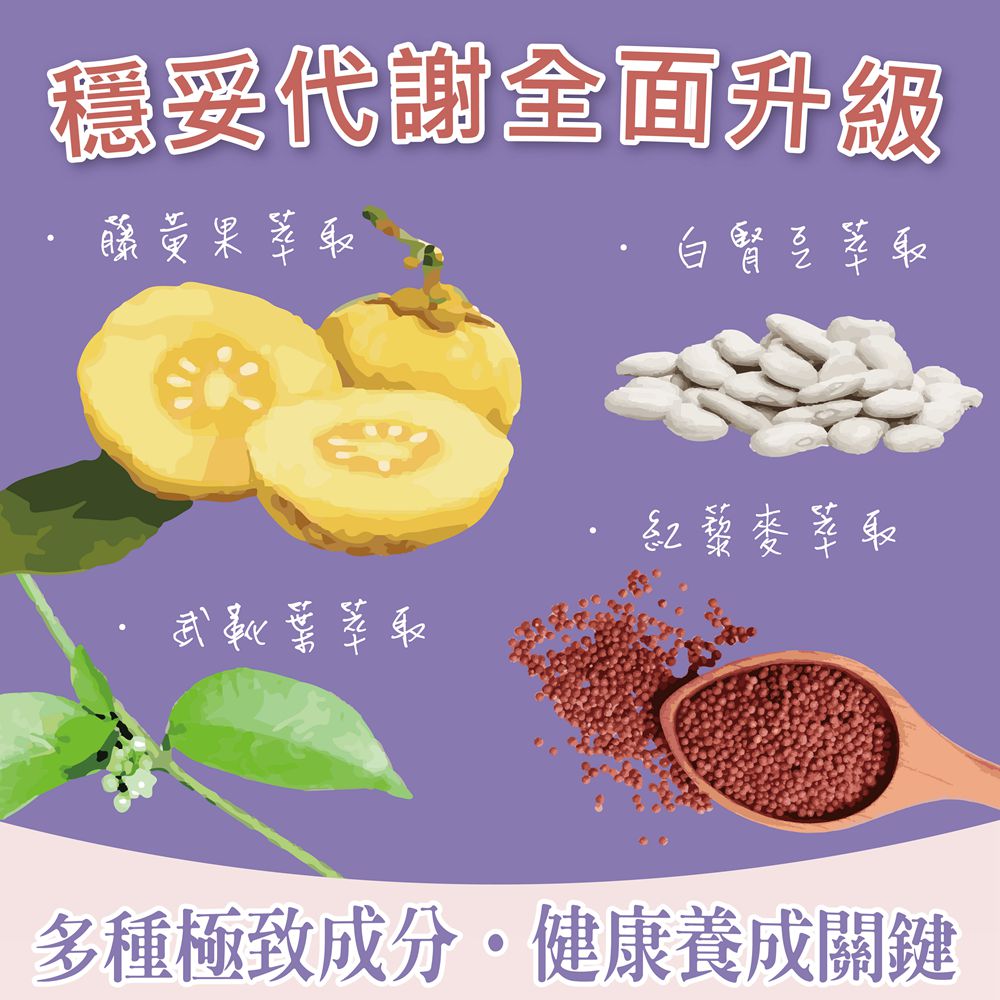 | 成 份: | 白柚果汁粉(砂糖、麥芽糊精、白柚濃縮汁、樹薯澱粉、檸檬酸、香料、檸檬酸鈉、蘋果酸、β-胡蘿蔔素)、洋車前子穀粉、魔芋粉、鼠尾草籽粉、紅藜麥萃取粉(紅藜麥、麥芽糊精)、藤黃果萃取粉、白腎豆萃取粉(白腎豆萃取物、麥芽糊精)、武靴葉萃取物、蘋果果膠(蘋果果膠、葡萄糖)、毛喉鞘蕊花萃取粉(毛喉鞘蕊花萃取物、麥芽糊精)、玉米可溶性纖維、專利鼠李糖乳桿菌、專利乳酸片球菌、專利青春雙岐桿菌 |